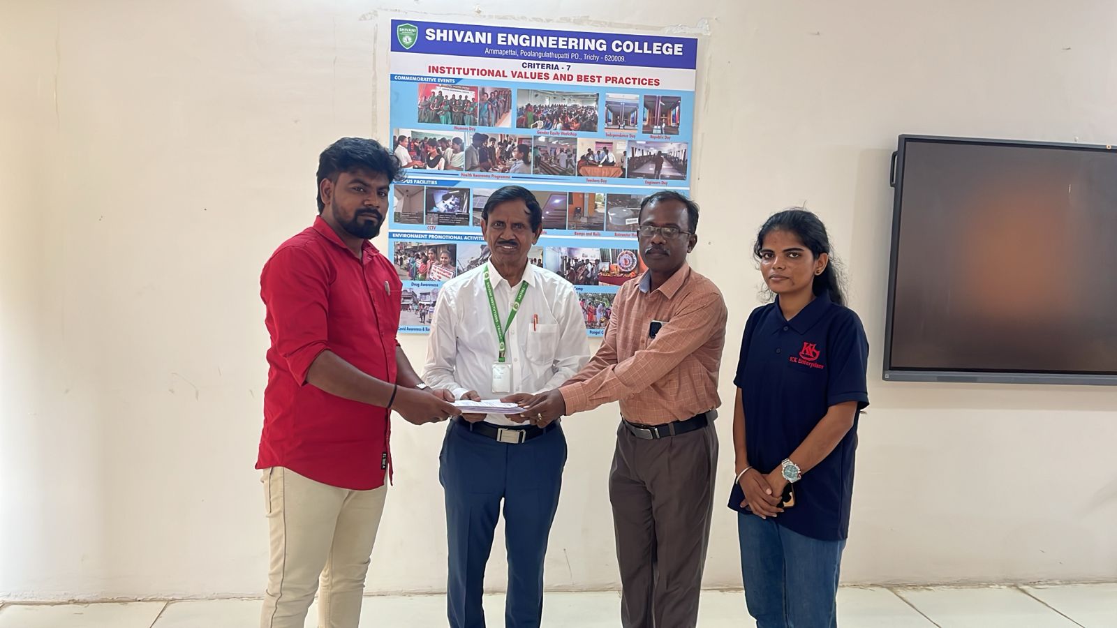 At the conclusion of the recruitment process, the HR Manager, Mr. Panneerselvam, formally handed over the offer letters to the college administration.