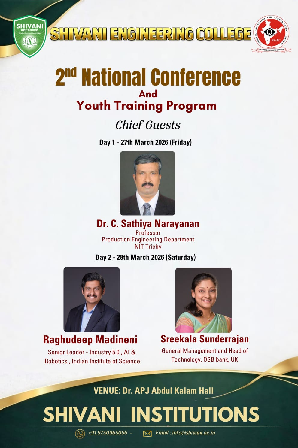 PROGRAMME ON “Second National Conference on ‘Emerging Trends in Engineering Science and Technology’” at Held on 27 th March -2026 at SHIVANI ENGINEERING COLLEGE, POOLANGULATHUPATTI.